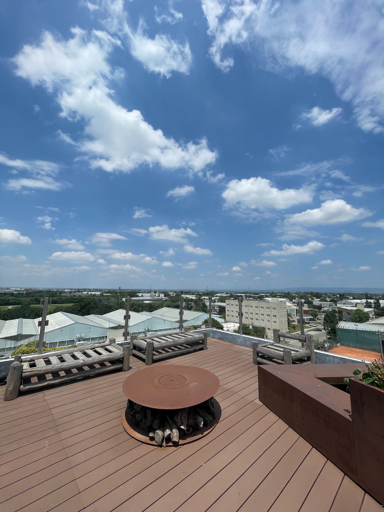 El edificio ofrece oficinas de alta gama y estacionamiento para más de 1000 autos. Cuenta también con una terraza que dispone de un espacio gastronómico y vistas a las sierras de Córdoba y al campo de golf (Quorum Golf).